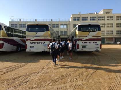 バスに乗り、たくさんの人に見送られながら出発しました。