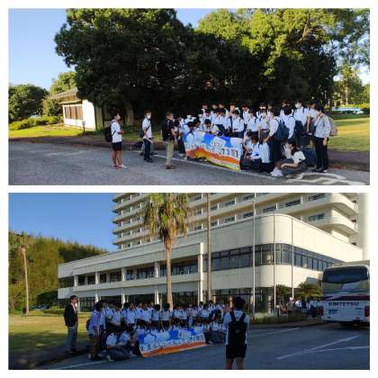 出発前にホテルの横で学級写真を撮りました。今から倉敷に向かいます。