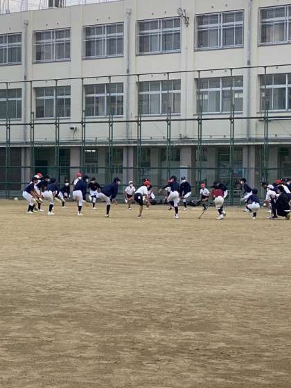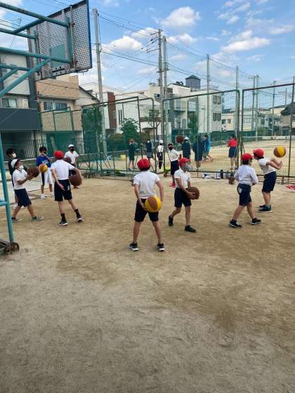 バスケットボール部と野球部の活動の様子です。中学生の先輩たちから教えてもらいながら活動しています。