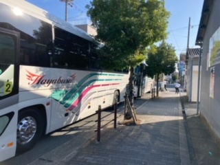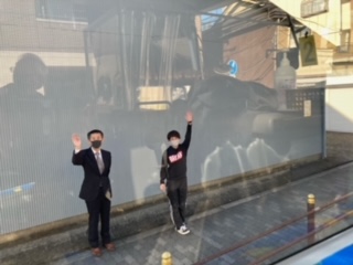 全員バスに乗り込みました。校長先生たちに見送ってもらい、いよいよ出発です。