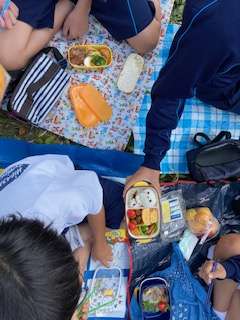 お待ちかねのお弁当タイムです。みかんをたくさん食べているので、食べ切れるか心配ですが……。