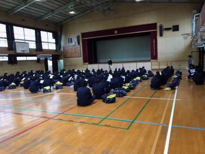 1日(火)の放課後に明日の出願に備えて体育館で一般選抜を受験する生徒の事前指導を行いました。全体で話をした後、学校ごとに分かれてリーダーを決めたり、行き方の確認をしたりしました。