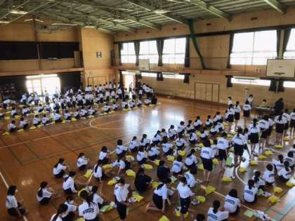体育館で男子と女子に分かれて、身長と体重をはかりました。2、3年生は教室前の廊下で視力測定も行いました。1年生は明日の行う予定です。