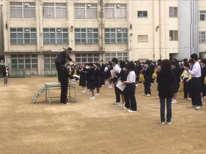 9日(月)の全校集会で専門委員会の認証式を行いました。生徒会と3年1組の専門委員が代表になって、認証状を授与しました。その他のクラスは終学活で渡します。早速、本日の放課後から専門委員会があり、活動が始まります。クラスの代表としての自覚と責任を持って参加しましょう!