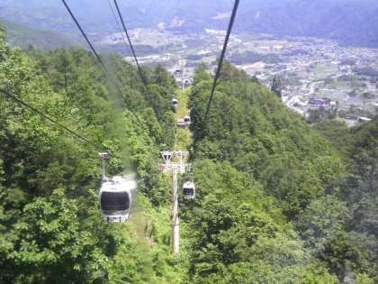 八方池までのトレッキングは無事終了しました。好天に恵まれ、白馬の山々がとても雄大でした。これからバーベキュ−に向かいます。