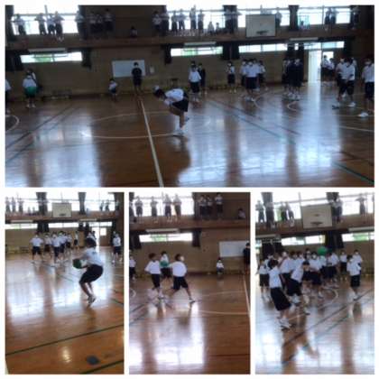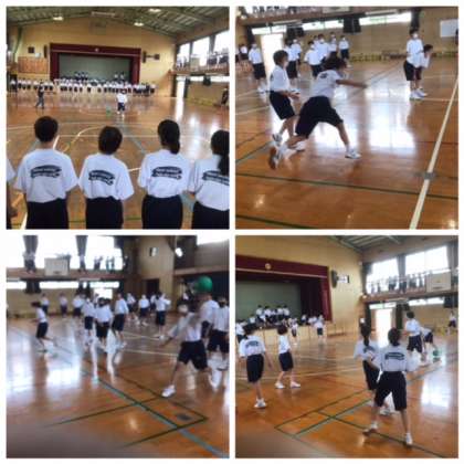 試合は1試合8分間、男女混合のトーナメントで行いました。試合終了のときに外野の数が少ないチームが勝ちとなります。観戦をしているクラスから声援や拍手が送られました。