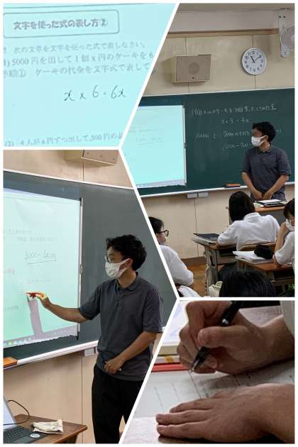 1年生の数学では、文字式を学習しています。今日は、教育センターのスクールアドバイザーの先生に授業を見ていただき、授業後に授業力向上へのアドバイスを受ける取り組みを行いました。
