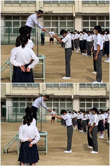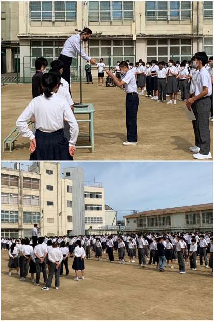表彰はありませんでしたが、その他にも、陸上部では男子の100m、200m、110mハードル、1500m、女子の100m、100mハードル、走り高跳び、400mリレーでそれぞれ府大会への出場権を獲得し、卓球部も男子チームが健闘したと顧問から聞いています。3年生にとっては中学校の部活動も残り少なくなっていますので悔いを残さないようがんばりましょう。