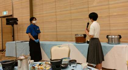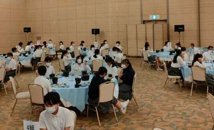 ホテルに到着し、部屋で少しくつろいだあと、待ちに待った晩御飯です!食事会場へと移動し、ホテルの入館式を終えて、カツオのたたきなどの高知で有名な皿鉢料理メニューを満喫します。