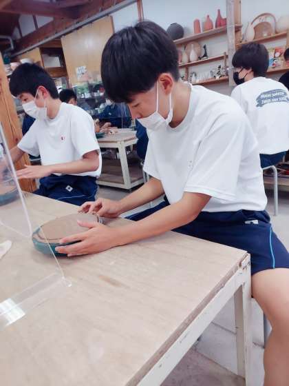 陶芸体験では、お皿やお椀、湯呑などを各自で選択して製作しています。完成に向けて、あと少しです。