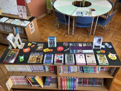 また、「文豪ノ怪談」特集や作家さんの特集のコーナーなどを図書館支援員の方やボランティアの方が作ってくださったので、ぜひ見に来てください。