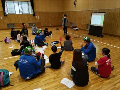 本日の防災イベントでは、子どもたちは、紙石鹸づくりをしたり、防災クイズをとおして防災・減災について学びました。また、対話型の取組で、自分の考えを伝えるとともに、防災知識を深めました。