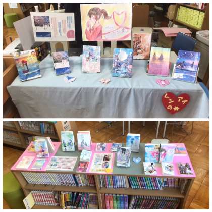 学校図書館では、2月から恋愛特集を開催しています。上の画像の本は図書委員のおすすめです。ポスターは昨年度図書委員が描いてくれました。飾りは図書館ボランティアの方が作ってくれたものを図書委員がセットしてくれました。