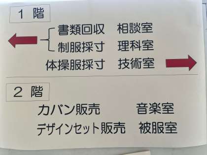 本日の制服採寸・物品販売は、10時より予定通り実施いたします。13時までとなっておりますが、混み合うことも予想されますので、できるだけ午前中にご来校いただきますようお願いします。