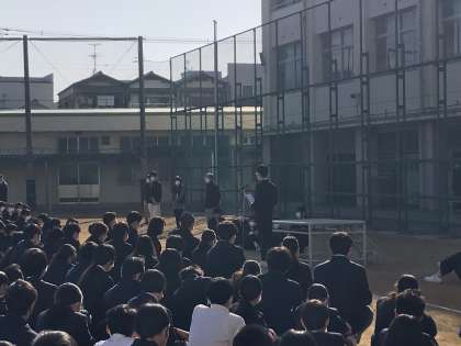 6日(月)の全校集会で3年生を送る会を行いました。在校生からお祝いの言葉と卒業式を彩るプレゼントとして、2年生からはコサージュ、1年生からはメッセージカードが贈られました。卒業生は感謝の気持ちとして、代表生徒がお別れの言葉を贈りました。