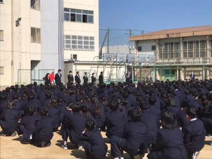 10日(月)、運動場にて着任式を行いました。式では、転任してきた先生の紹介やあいさつがありました。