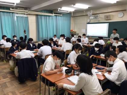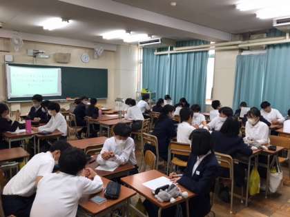 18日(金)の5限に、2年生はネット依存について学びました。動画を視聴して、主人公の日常生活を見直すために必要なことを考えるなどして今までの自分の生活を振り返りました。