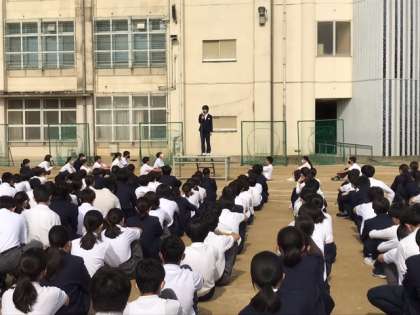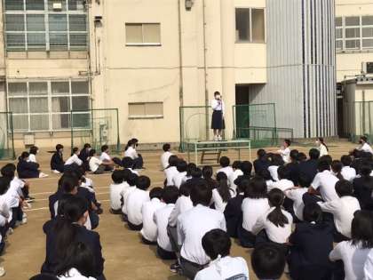 22日(月)の朝は全校集会がありました。今月の専門委員会での活動の報告を委員長や学年代表がしてくれました。