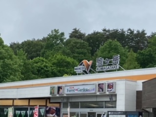 ?駒ヶ岳SAに到着しました。小雨が降っているので、バスの中での昼食となりましたが、みんなでワイワイ楽しく食べました。気温が結構低いので、このあとのラフティングが不安です。