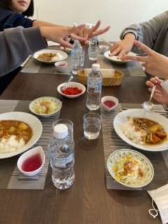 ?ペンションに戻り、お昼ごはんのカレーです。今日もモリモリおかわりしています。