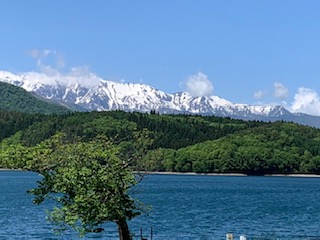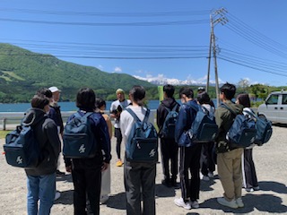 ?こちらは青木湖に向かったSUP、カヤックのグループです。まずは説明を受けます。青木湖からの景色もとても綺麗です。