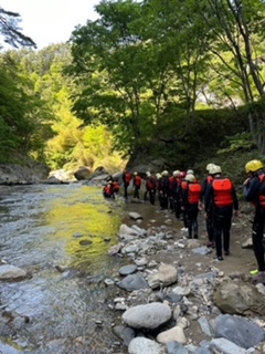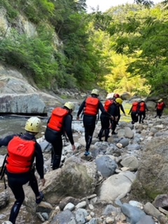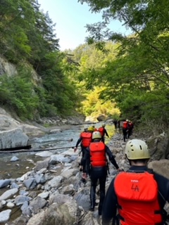 ?キャニオニング組です。まずは川に沿って歩いて行きますが……。