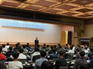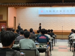 2泊目のホテル阿智川に到着し、入館式を行いました。ホテルの方からのお話と、生徒代表からあいさつがありました。