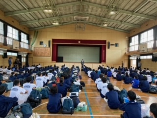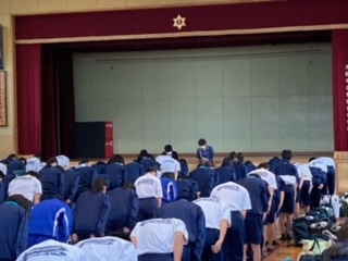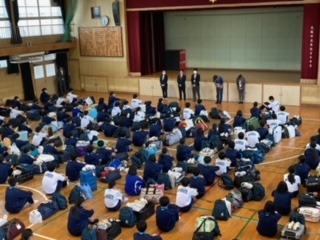 ?無事学校に到着しました。校長先生のお話と看護師さん、写真屋さん、添乗員さんへのお礼の言葉を生徒代表が述べて、解散式を終えました。