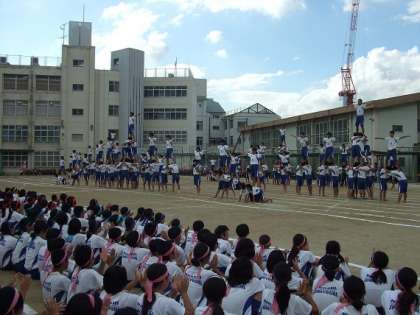 画像は、1、2年生の学年競技と3年生の団体演技です。