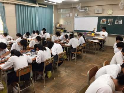 6限には5限の説明を受けて、下絵をカッターを使って切っていきました。来週はセロファンを貼っていく予定です。