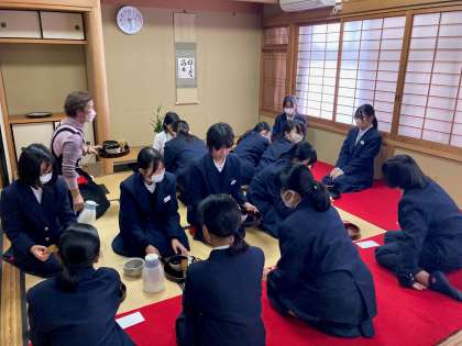 14日(木)、15日(金)、18(月)の放課後、茶道教室&学習会を行いました。夏休みに引き続き、たくさんの生徒さんが参加してくれました。覚えたてのお作法で、学習会に参加している生徒さんたちをおもてなしてくれました。