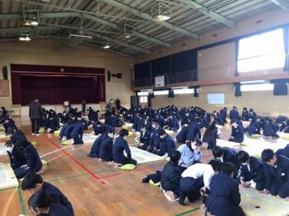 2月2日(金)の5、6限に2年生の百人一首大会がありました。昼食後、すぐに国語係が準備をしに来てくれ、今年も国語係の司会のもと、試合が始まりました。最初は個人戦、次は班に分かれての団体戦です。さあ、優勝の栄冠に輝くのはどのクラスでしょうか!?