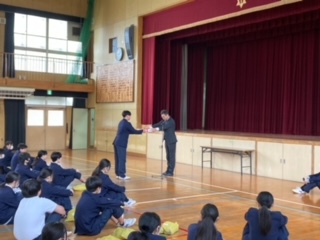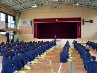 6日(水)1限に、75期生の同窓会入会式、卒業記念品贈呈式が行われました。校長先生から卒業にあたってのお話のあと、同窓会の方からのメッセージを伝えていただきました。そのあと、PTA、同窓会からの記念品の贈呈があり、代表生徒が受け取りました。