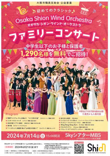 オオサカ・シオン・ウインド・オーケストラによるファミリーコンサートの案内です。
