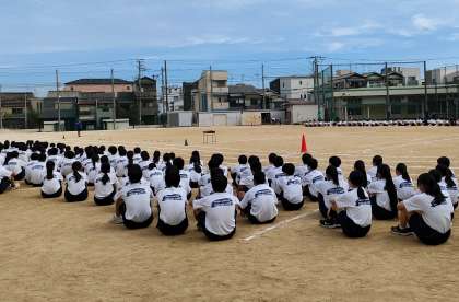 本日、午後から全学年での体育大会予行をおこないました。走るコースの確認や係生徒の役割の確認をおこないました。10月4日(金)に体育大会がおこなわれる予定です。