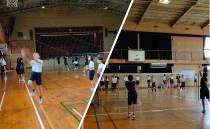 部活動体験(バドミントン部・バスケ部)の様子です。