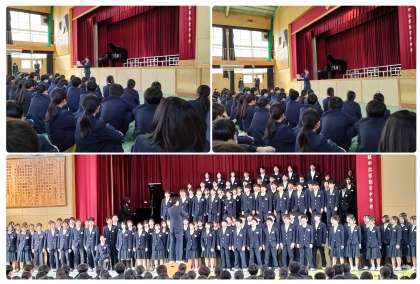3月7日(金)に体育館で3年生を送る会がおこわれました。もうすぐ卒業を迎える3年生にとっても、全校生徒で集う最後の行事になります。在校生代表生徒と3年生代表生徒がお礼の言葉を読み上げ、最後は3年生の全体合唱で会を締めくくりました。76期生の気持ちのこもった歌声が在校生の心に響きました。