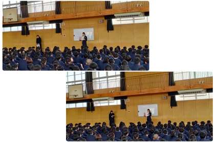 始業式の後、在校生代表より「歓迎の言葉」が読み上げられました。そして、新入生代表より「誓いの言葉」が読み上げられました。新入生の皆さんは、中学校生活に慣れるまで大変かもしれないですが、先輩たちとコミュニケーションをとり、分からない事は聞いてみてください!