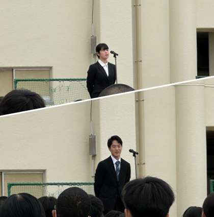 5月26日(月)の全校集会で教育実習生の紹介がおこなわれました。今年度は4名の教育実習生が東住吉中学校で実習をおこないます。三週間という短い期間になりますが、東住吉中学校の皆さん、よろしくお願いします!