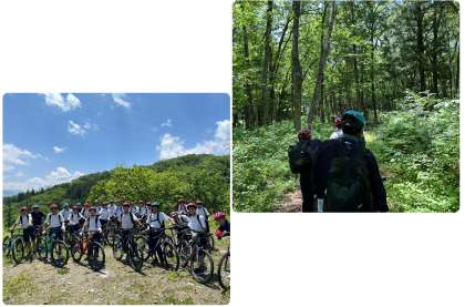 選択別体験の一つ、マウンテンバイク体験の様子です。天候にも恵まれ、素晴らしい景色の中、サイクリングを楽しみました!