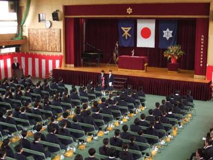 整列後、1組から5組の順に入場しました。式では、本校音楽部から心のこもった校歌の演奏と在校生代表から歓迎の言葉がおくられました。新入生の誓いの言葉では、それに応える素晴らしい誓いが行われ、北田辺小学校出身の2人が、はつらつとした声で「新しい歴史を作り、史上最高の学年にします」と宣言してくれました。