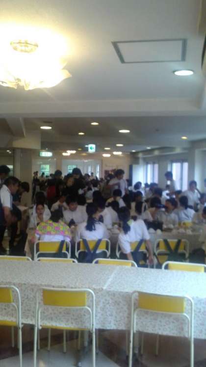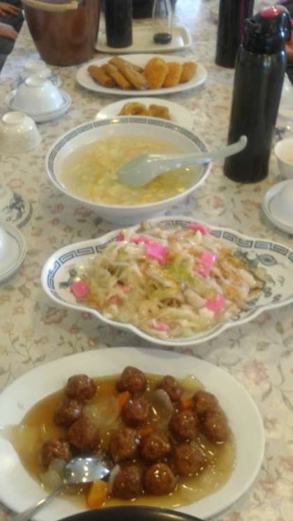 小雨の中、フィールドワークも無事終了。昼食タイムとなりました。メニューは皿うどん定食です。