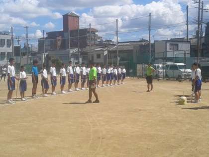 25日(木)、始業式、学活後に、9月16日(金)の運動会に向けて、早速練習を行いました。本日の練習は先頭練習です。各クラス男女体育委員と生徒会役員が運動場に集まり、入場や選手宣誓、全体体操、競技場の注意など開会式がスムーズに行えるように練習しました。