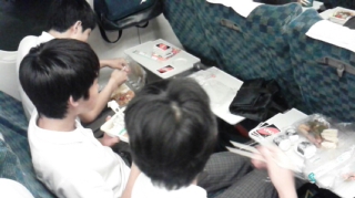 車内で「いただきます」をして、家から持ってきた昼食を食べ始めました。