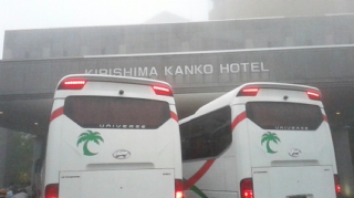霧島観光ホテルに到着しました。各自荷物を持って部屋に移動します。画像を見ての通り、すごく霧が出ています。