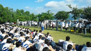 各家庭の前に並んで入村式を始めました。式では、出水市長様自ら歓迎の言葉をくださいました。
