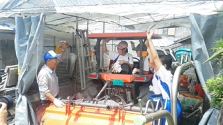 もち米の苗を運ぶ作業をしていました。昨晩はお孫さんと一緒に遊んだり、プリン作りをしたそうです。