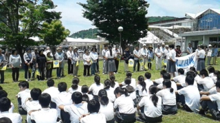 民家さんの代表の方から「またきゃんせー!あっぱー!」(また来てください!さようなら!)という温かい言葉をいただきました。また、記念品もいただきました。