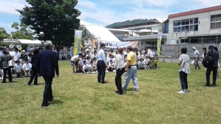 退村式の後、民家の方と一緒に学級写真を撮りました。