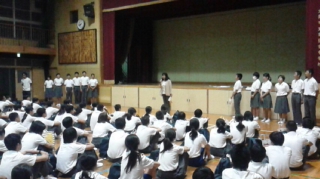 予定通りに帰校し、解散式を行いました。3日間を終え、課題も出てきましたが、とても充実した修学旅行でした。家に帰ったら、感謝の気持ちを込めた「ただいま!」を忘れずに、様々な活動の土産話を聞かせてあげてくださいね!